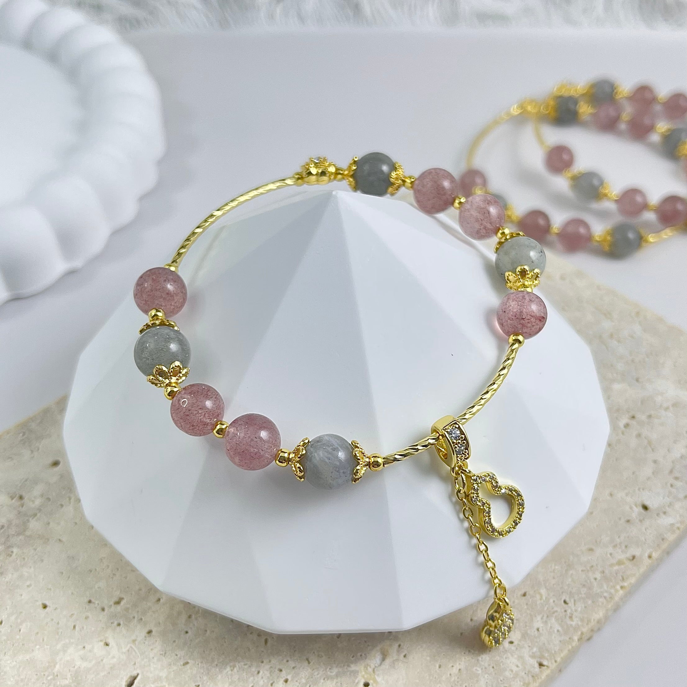 We carefully handpick each crystal bead and craft every bracelet with attention to detail. Due to the limited availability of these natural beads, each design is produced in small quantities. As the appearance of natural beads can vary from batch to batch, we may not be able to recreate the design in the future, making each piece truly one-of-a-kind.